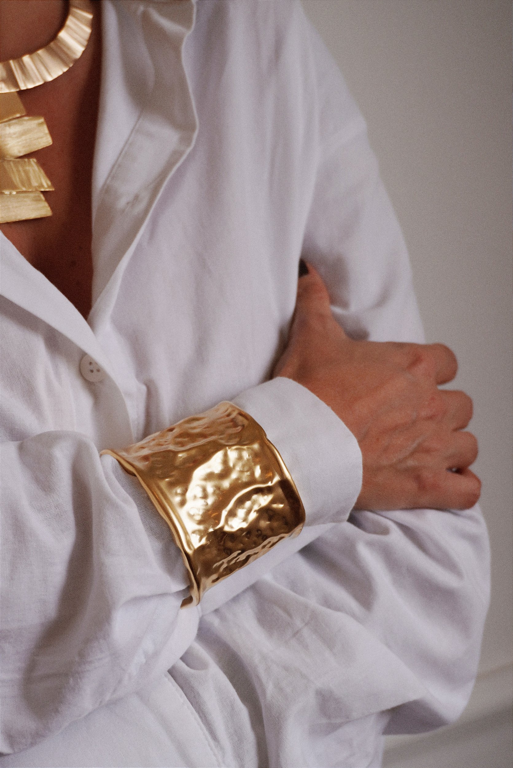 O novo luxo está nos detalhes. Este bracelete em latão martelado é feito à mão, valorizando formas orgânicas e acabamento manual que tornam cada peça exclusiva e cheia de personalidade.