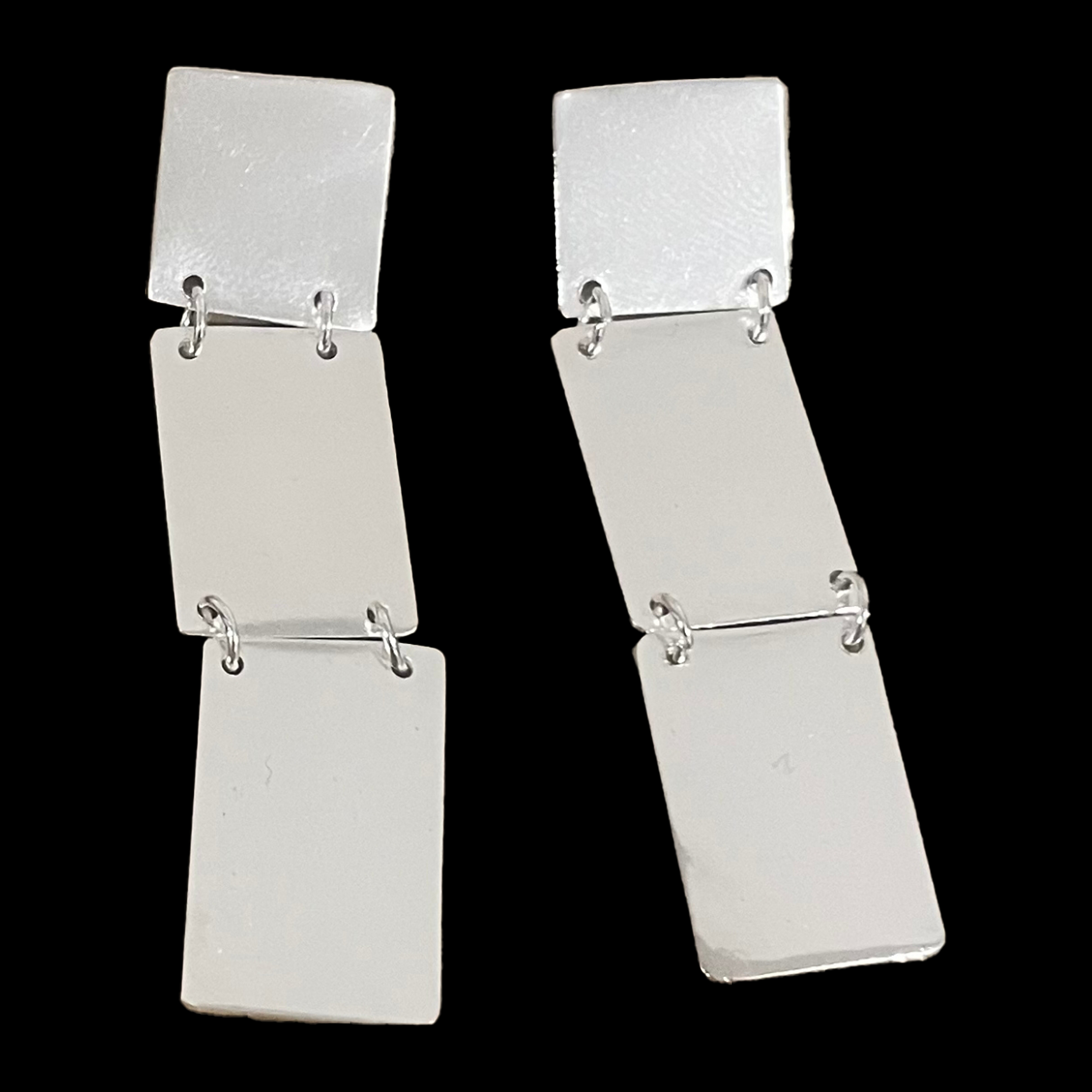 Produzido à mão no Brasil, o brinco Ladrilho é feito em latão reciclado, com acabamento prateado aplicado cuidadosamente para garantir resistência e brilho suave. Cada peça carrega pequenas variações que reforçam sua natureza artesanal — cada par é único, como cada história que o usa.