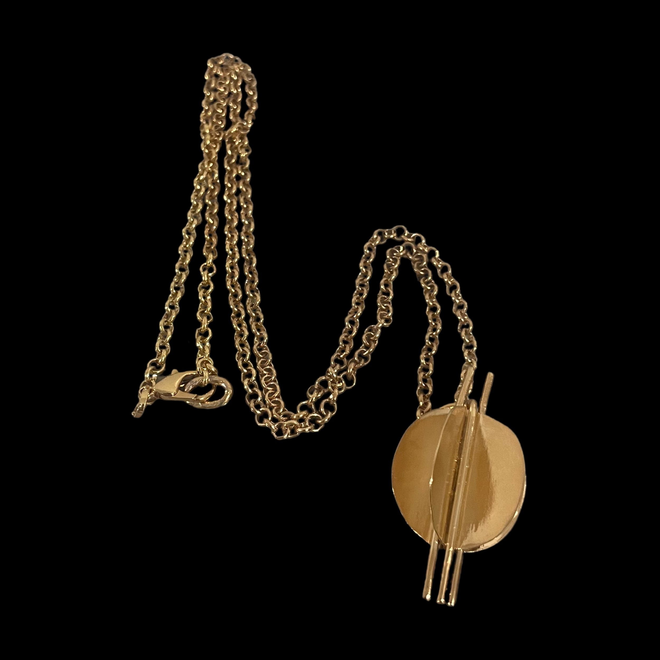 Em latão com banho em ouro 18 klts e corrente com banho em prata.